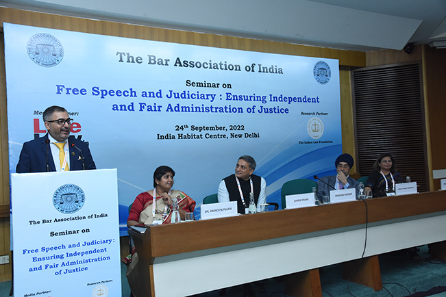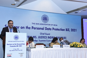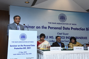 The Bar Association of India organized a Seminar on the Personal Data Protection Bill, 2021 on 3rd May, 2022 at Jacaranda Hall, India Habitat Centre, Lodhi Road, New Delhi. Hon’ble Ms. Justice Indira Banerjee, Judge, Supreme Court of India inaugurated the seminar. The topics discussed during the meetings are - Unpacking the Data Protection Law, Who Watches the Watchers? Government Surveillance Powers, Impact of the PDP Act on Industry, Data Governance within the PDPB and Criminal Law and Privacy. The topics for the seminar given above was very timely and thought provoking and not only highlight the current problems and new challenges but also set the tone for the future agenda of Data Protection Law in India. Many experts spoke on the occasion including Mr. Prashant Kumar, President, BAI, Mr. Shyam Divan, Vice President, BAI, Dr. Pinky Anand, Vice President, BAI, Mr. Chander Uday Singh, Vice President, BAI, Mr. Rajiv Duta, Senior Advocate & Chairperson, BAI Senior Advocates Forum, Dr. Uday Prakash Warunjikar, Vice President, BAI, Mr. Yakesh Anand, Vice President, BAI, Dr. Anindita Pujari, Hony. General Secretary, BAI, Mr. Amarjit Singh Bedi, Vice President, BAI, Mr. Apar Gupta, Internet Freedom Foundation, Mr. Anand V., Public Interest Technologist, Cyber Security Advisor, Deep Start LLP, Ms. Ria Singh Sawhney, Advocate, Mr. Ashish Aggarwal, Head of Policy, NASSCOM, Ms. Shahana Chatterji, Partner, Shardul Amarchand Mangaldas, Ms. Bagmisikha Puhan, Advocate, Ms. Anita Gurumurthy, Executive Director and Senior Fellow, IT for Change and Ms. Vrinda Bhandari, Advocate. BAI collaborated with LiveLaw for live reporting of the event and the event was supported by the Indian Law Foundation.